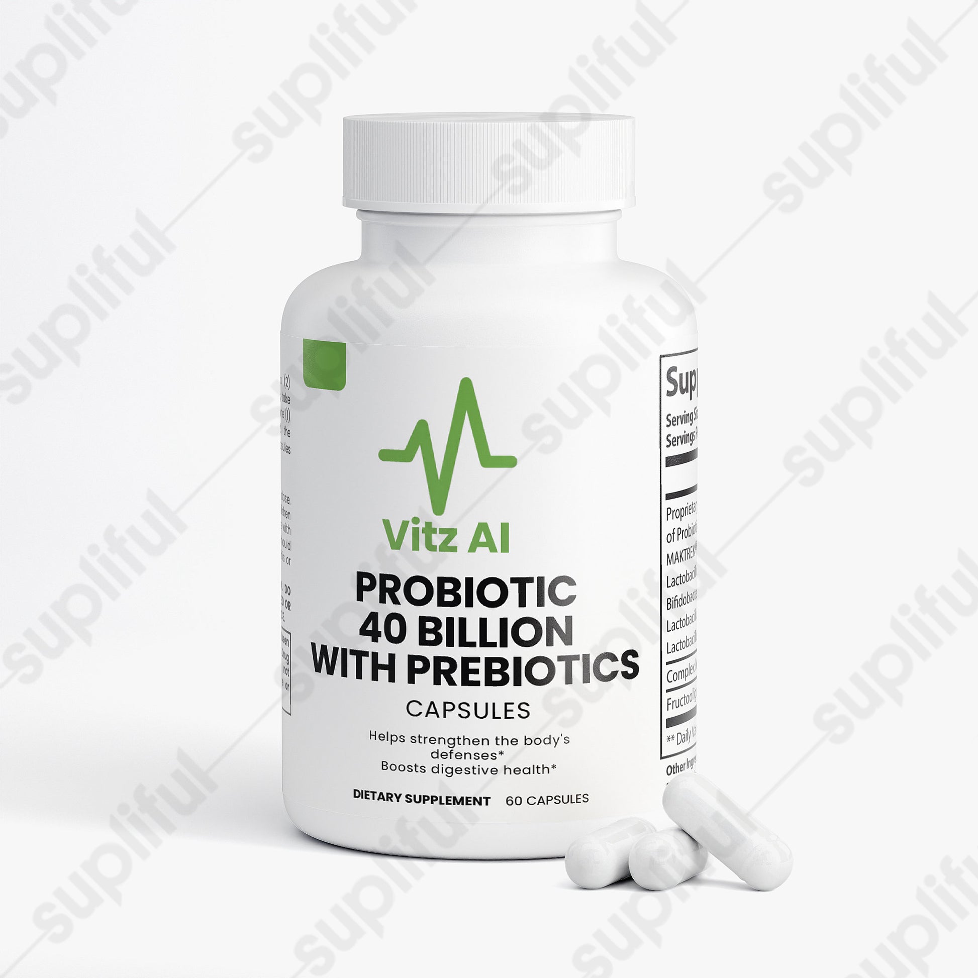 Probiotic 40 Billion with Prebiotics is a blend of four probiotic strains: Lactobacillus Acidophilus, Bifidobacterium Lactis, Lactobacillus Plantarum, and Lactobacillus Paracasei.