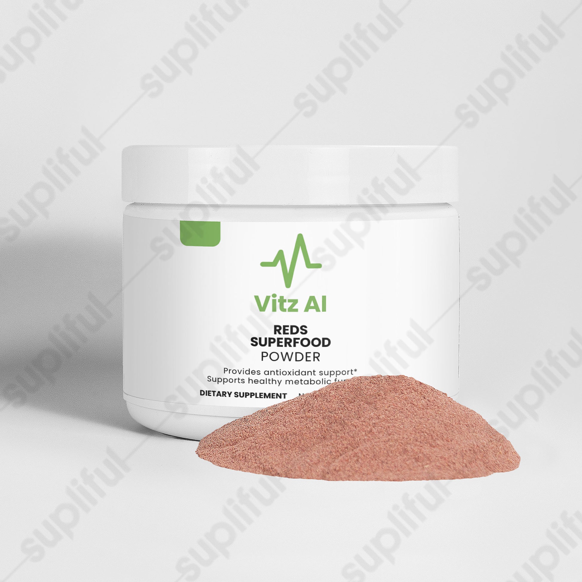 This reds powder supplement offers a rich blend of fruits, vegetables, and botanicals aimed at delivering antioxidants, fiber, and essential nutrients for overall health. The formula includes Beet Root, Strawberry Juice, Hibiscus, and a variety of other nutrient-dense ingredients like Acai Juice Powder and Cranberry Powder, designed to support optimal wellness. With a content of 120 grams, this supplement is perfect for daily consumption, providing a convenient way to boost your intake of vital nutrients and antioxidants to support health and vitality without the need for artificial additives.*