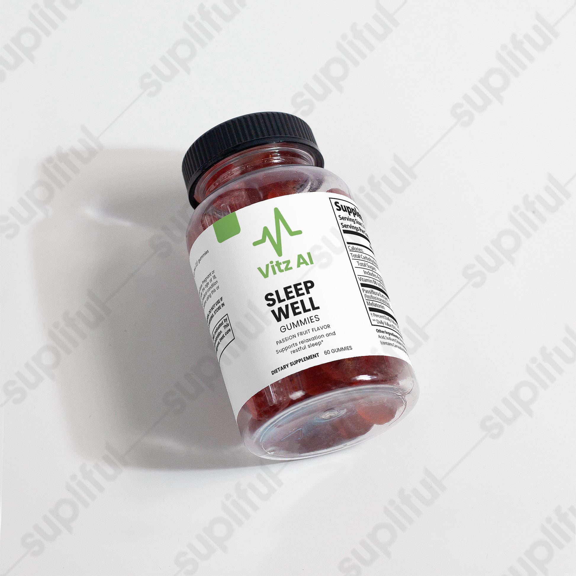 Ingredients: Passiflora Extract (Passiflora incarnate)(herb), Vitamin B6 (as Pyridoxine Hydrochloride), Melatonin, Glucose Syrup, Sugar, Glucose, Pectin, Citric Acid, Sodium citrate, Natural Passion fruit flavor, Vegetable Oil (contains Carnauba Wax), Purple Carrot Juice Concentrate (Color).